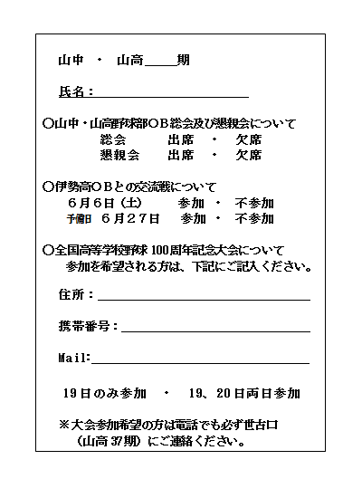 | 【ご案内】山中・山高野球部OB会総会の開催について | |||